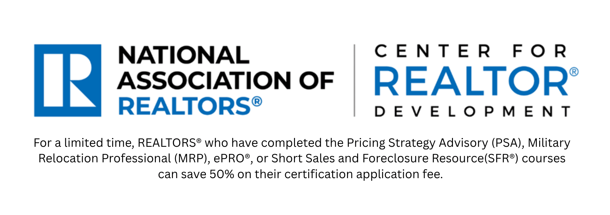 We offer trademarked NAR designation and certification courses on a quarterly basis. Many of these courses include a nationally renowned industry professional speaker and registration is open to all licensed REALTORS®.