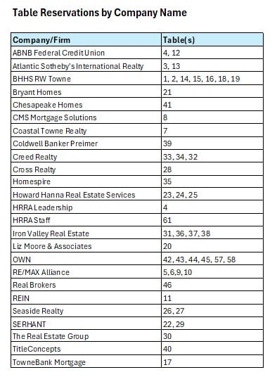 Please contact COE@hrra.com to request a table reservation pr making changes.